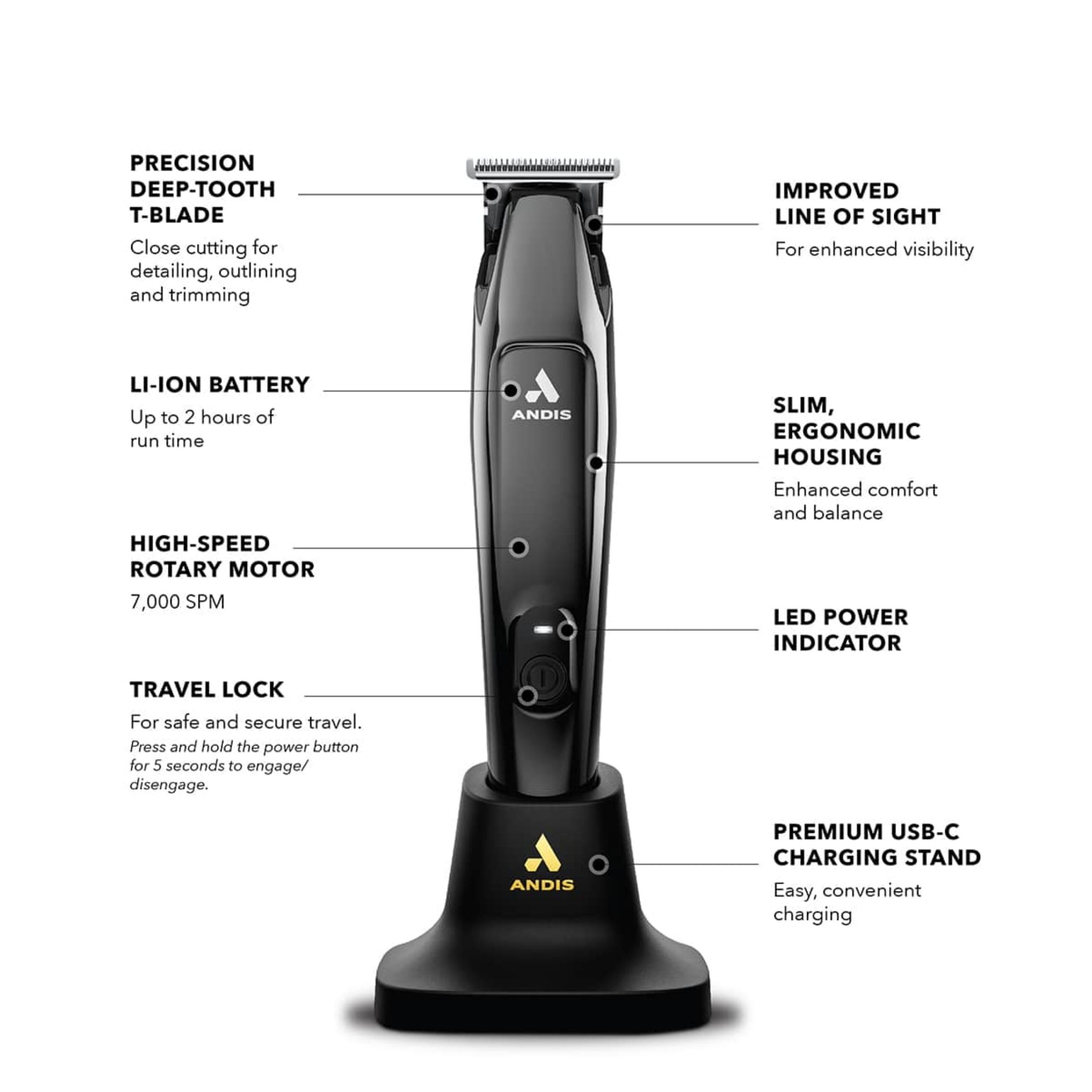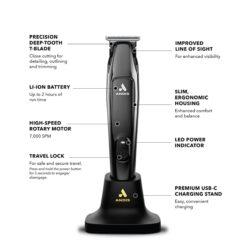 The Slimline Pro II Trimmer has been completely redesigned to be slimmer, lighter, and more powerful. The high-speed rotary motor, improved ergonomics, black chrome fade colorway, and a premium charging stand sets a new standard in a professional trimming.