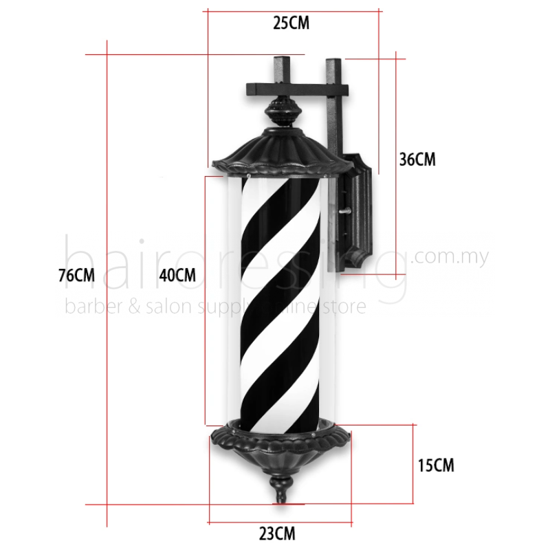 Traditional barber pole with acrylic cylinder. Set this beauty in your window and proudly display the symbol that is recognised by millions of people all over the world.