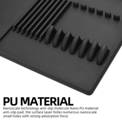 Stop destroying the finish of your countertops or workstations with the Irving barber company PVC station mat. Our mat is made to last, keep your tools from sliding off or adding wear to clear coat countertop finishes. These mats give you a nice soft area to place warm clippers and trimmers without the heat destroying the mat. Easy to clean, keeps the tools from sliding off while creating an organized-looking workstation.