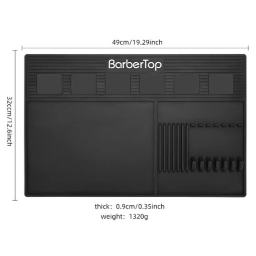Stop destroying the finish of your countertops or workstations with the Irving barber company PVC station mat. Our mat is made to last, keep your tools from sliding off or adding wear to clear coat countertop finishes. These mats give you a nice soft area to place warm clippers and trimmers without the heat destroying the mat. Easy to clean, keeps the tools from sliding off while creating an organized-looking workstation.