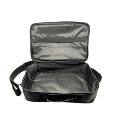 The inside of the bag is lined with a smooth, black satin like material. When the top flap is opened, you can see a large, open main compartment, perfect for storing clippers,