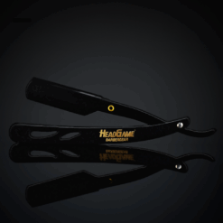 HeadGame Matt Black Straight Barber Edge Steel Razor Folding Shaving Knife [Free Classic Treet Blade]