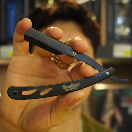 HeadGame Matt Black Straight Barber Edge Steel Razor Folding Shaving Knife [Free Classic Treet Blade]