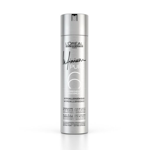 The infinitely professional hairspray with new hypoallergenic formulation provides optimized comfort and minimizes the risk of allergic reactions for pure performance. Formulated with strict minimum of 6 ingredients with no fragrance and no masking scent. This ultra-fine and extra strong hold hairspray provides instant drying and immediate hold without stiffness and visible residue. Leaves your hairstyle stays in place all day with brilliant shine.